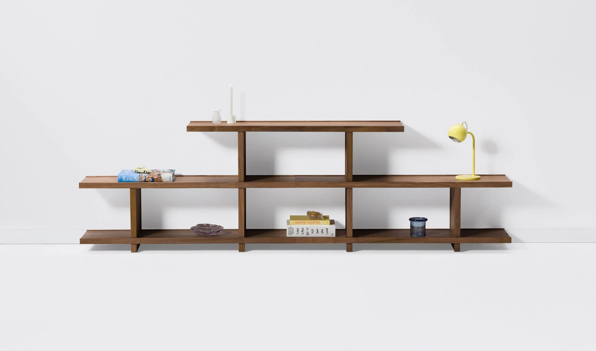 In situ, Pi functions as a standalone bookshelf, a long sideboard, or it can be configured as a full floor to ceiling library wall.