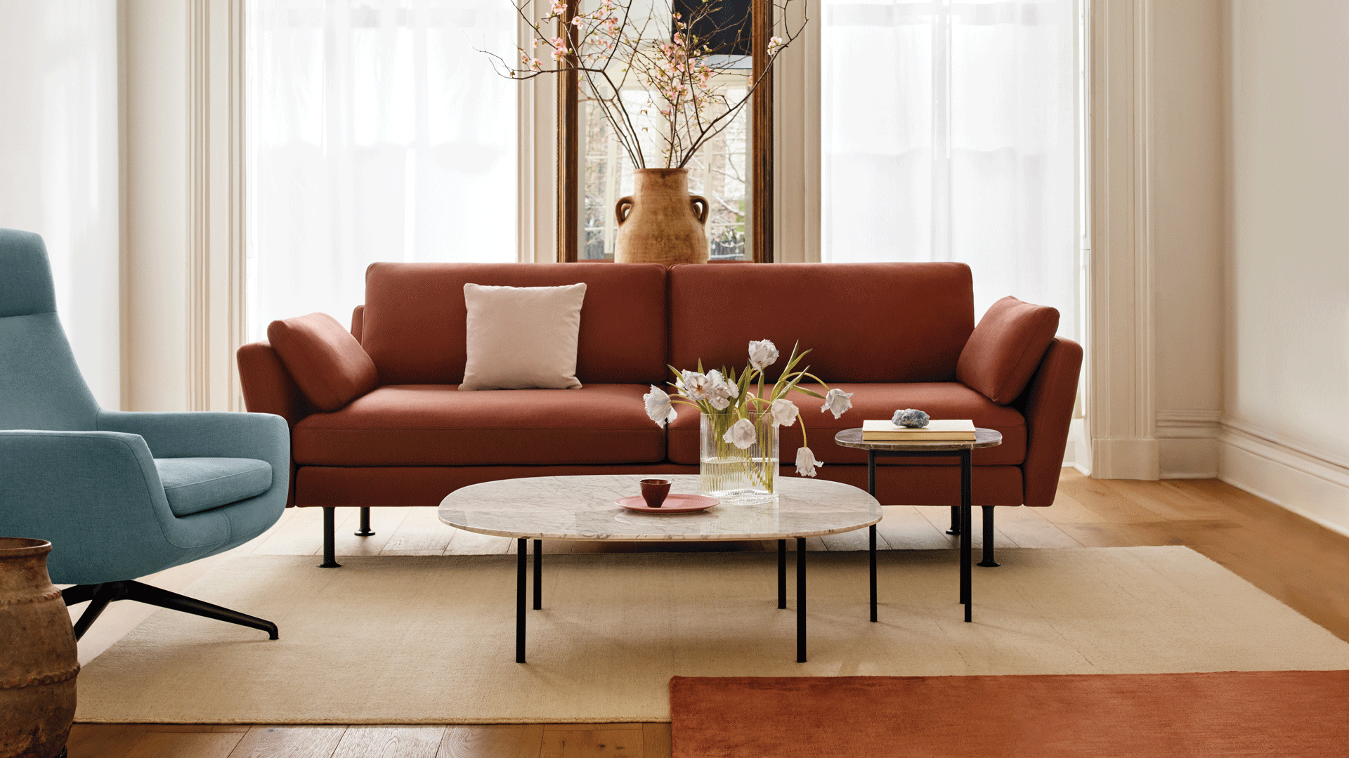 Detached cushions embrace a classic approach to sofa architecture. The seat consists of four layers of foam ranging from soft to supportive. The comfort layer consists of memory foam covered in pocketed feathers that waterfall down each side of the pillow to allow maximum modularity. Back cushions are filled with feather, down and fiber.